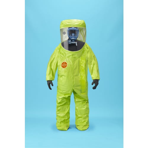 化学防護服 レベルA対応(EPA基準)非ハロゲン系の特殊樹脂フィルム層で不織布をサンドイッチした構造です。