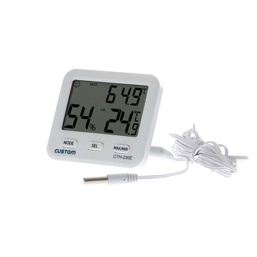 | 付属品 | 単4形乾電池(1本)、外部温度センサー(コード長:3m)、取扱説明書(保証書付) |