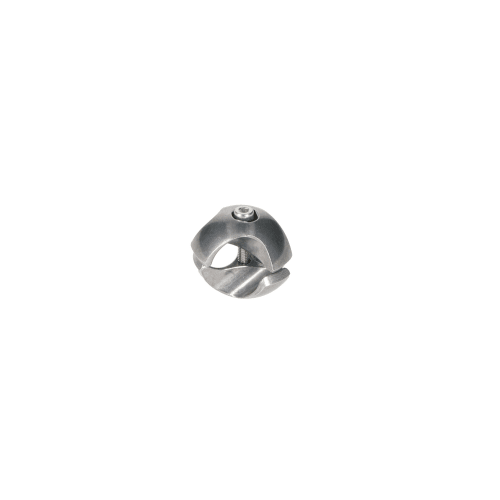 パイプ外径にピッタリ合うミゾの付いた球状のムッフです。3本の組立棒を直行させ1本のネジで固定できます。