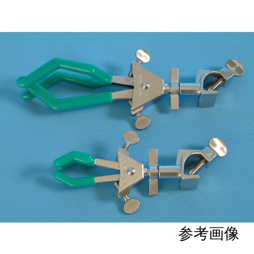 クランプとムッフの角度の調節は360°可能で調節用ナットで自由に固定が可能。ツメ部分にはガラス器具等を保護する為に厚手のビニールキャップを採用しています。