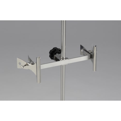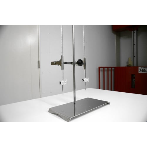 ステンレスクリップを両側に取り付けたビュレト挟みとしても使えるクリップです。クリップ式なので、簡単に細管などを挟むことができます。