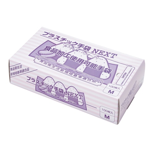 食品衛生法・新規格基準適合のプラスチック手袋です。食品加工場等で使用されます。