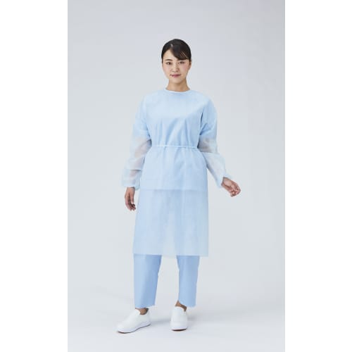 不織布製の割烹着タイプのウェアです。(袖口ゴム付。)医療現場、食品加工等様々な用途で使用されます。