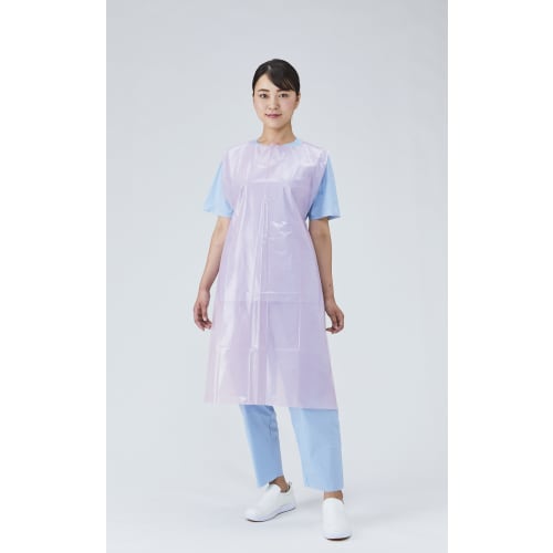 薄手で安価なポリエチレン製エプロンです。食品加工場、介護施設等で使用されます。